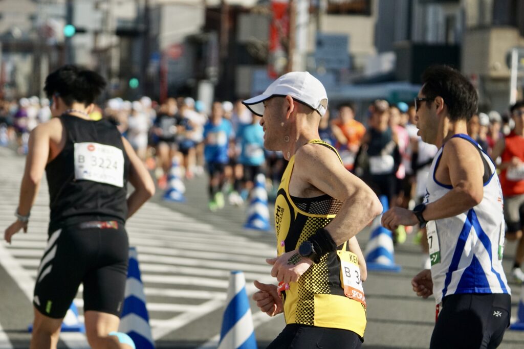 予定通りのペースで余裕のある表情の人、少し苦しそうだけど踏ん張っている人、それぞれのレースが見えてきます。