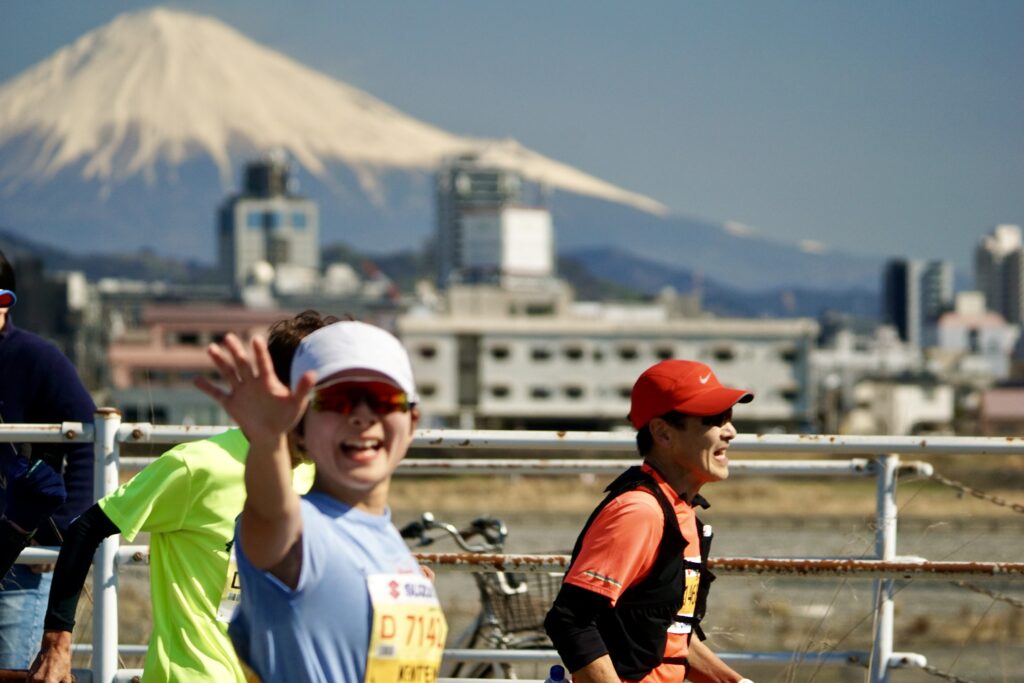 とはいえ、青空の下で富士山を背景に走ってくるランナーを見ると、「来てよかったな」と感じます。