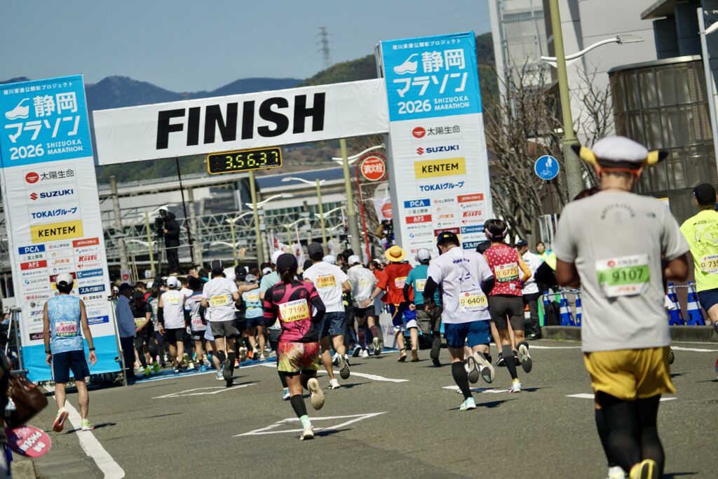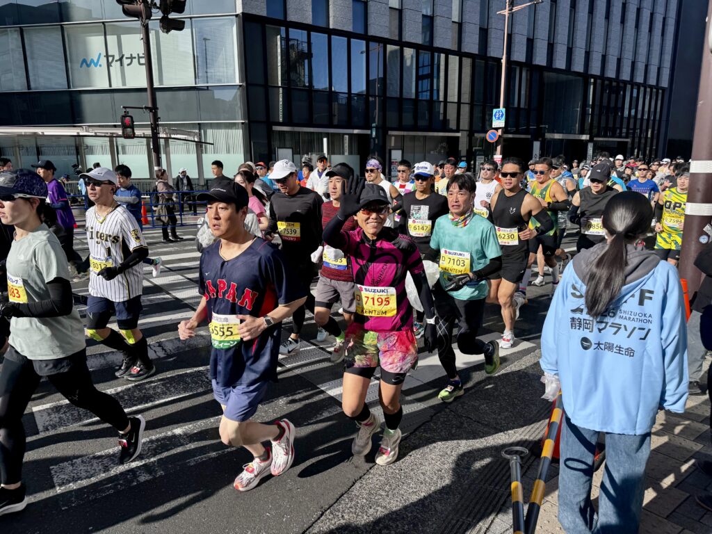 静岡マラソンといえば海沿いの強風が名物ですが、今年は多少風はあるものの、例年と比べるとそこまで気になるほどではなく、気温も低めランナーにとっては比較的走りやすいコンディションだったそうです。